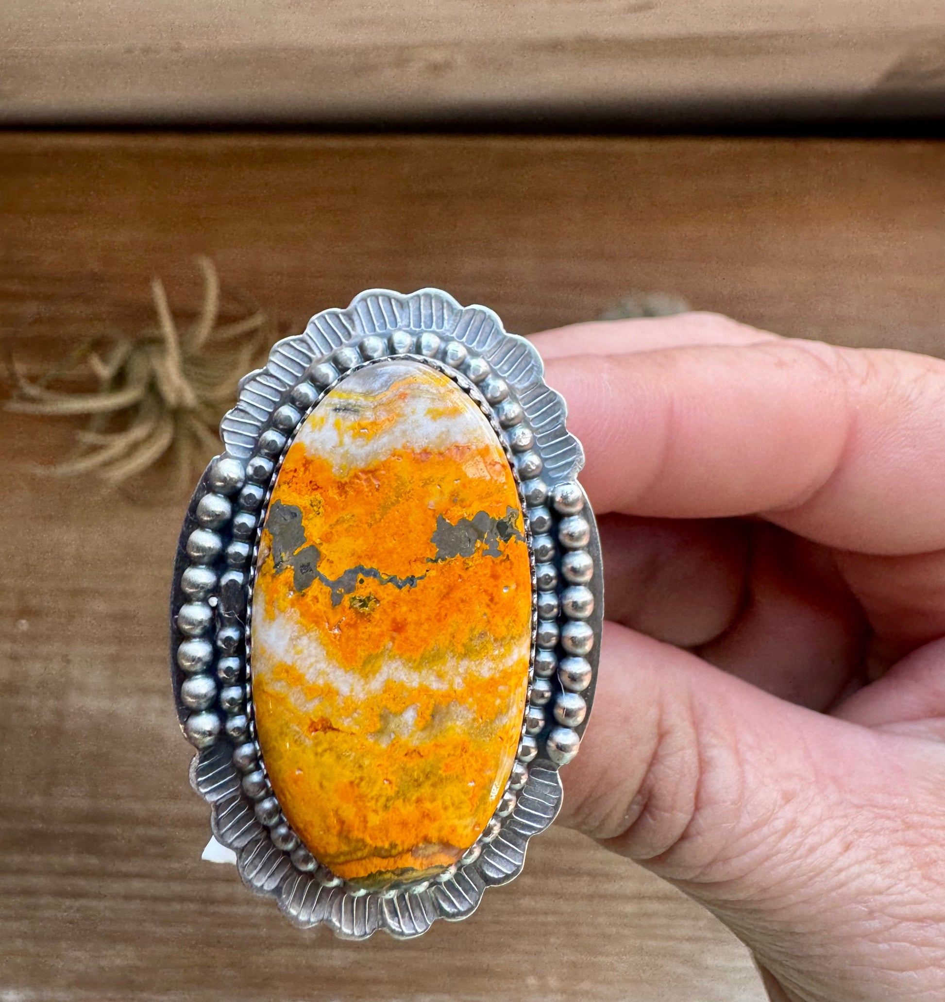 Big oval Ring - adjustable- sterling silver with bumblebee jasper