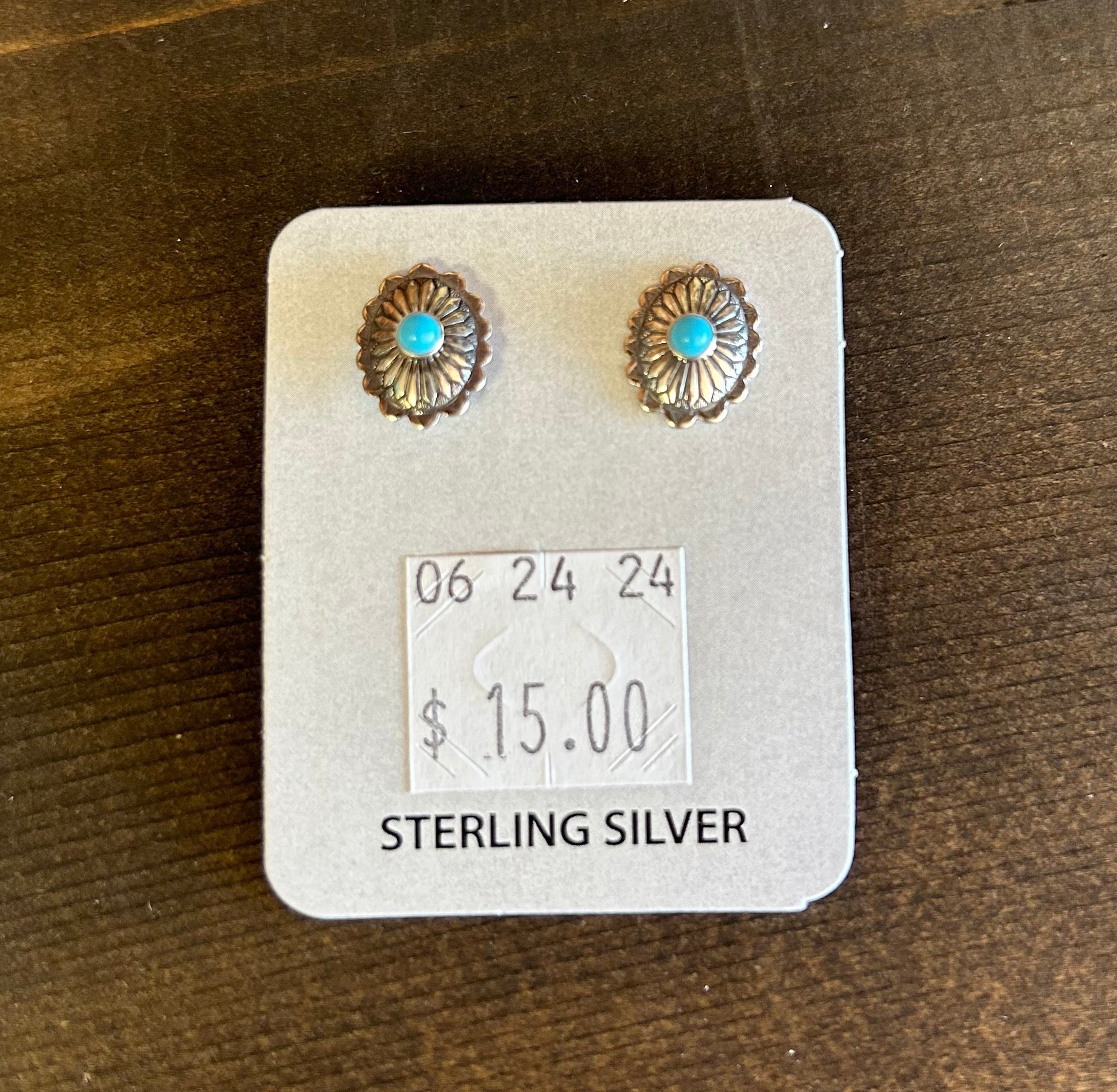 Oval Stamped Sterling Silver & Turquoise Stud Earrings