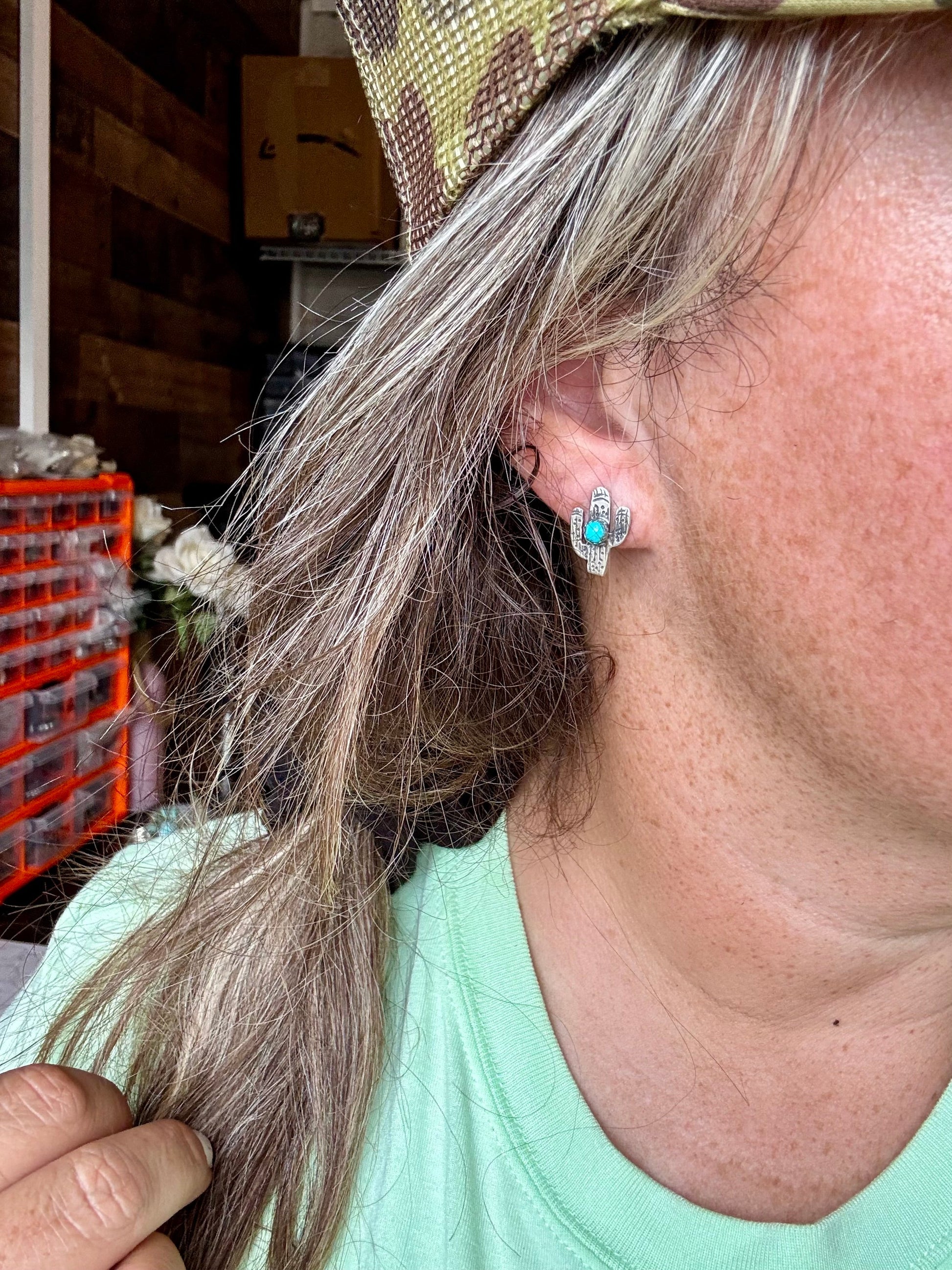 cactus earrings stud