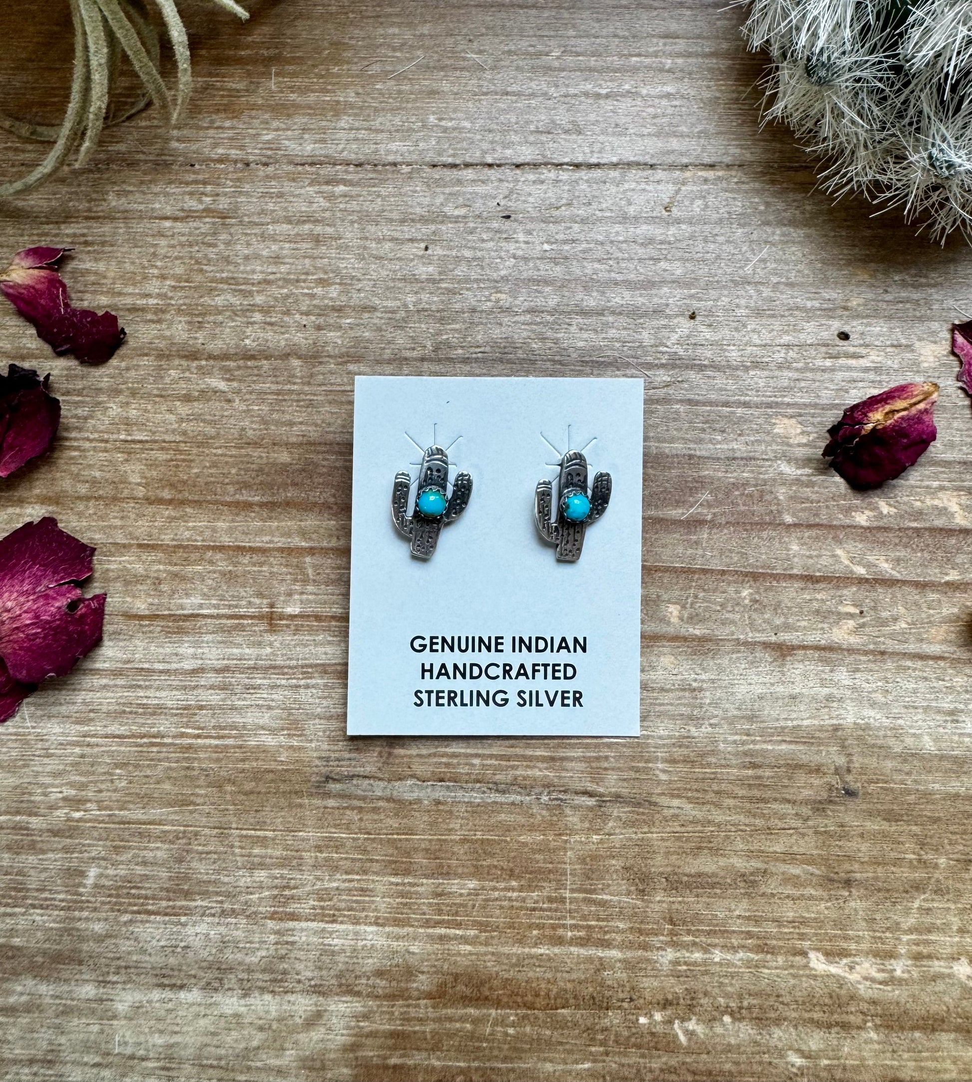 Smaller Cactus earrings stud - sterling silver and turquoise