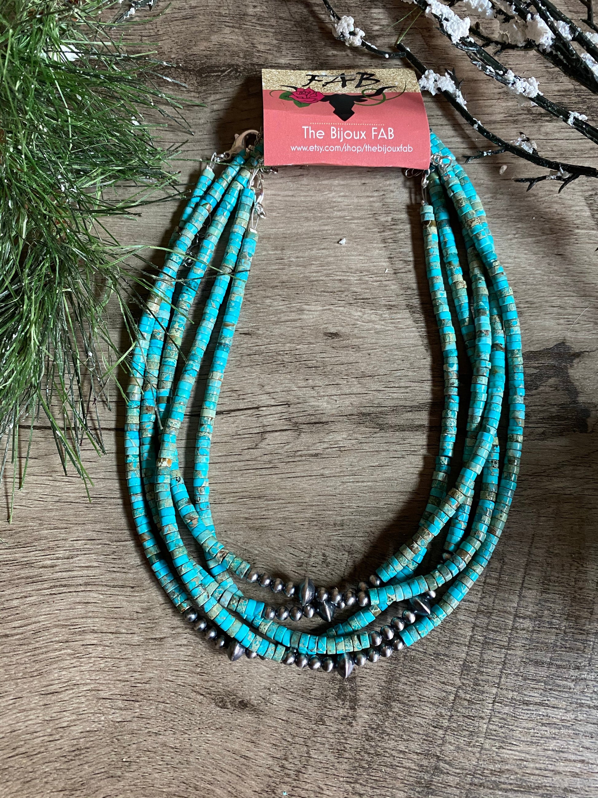 Sterling Silver Pearls and Variscite turquoise Choker - 14 inches