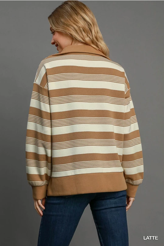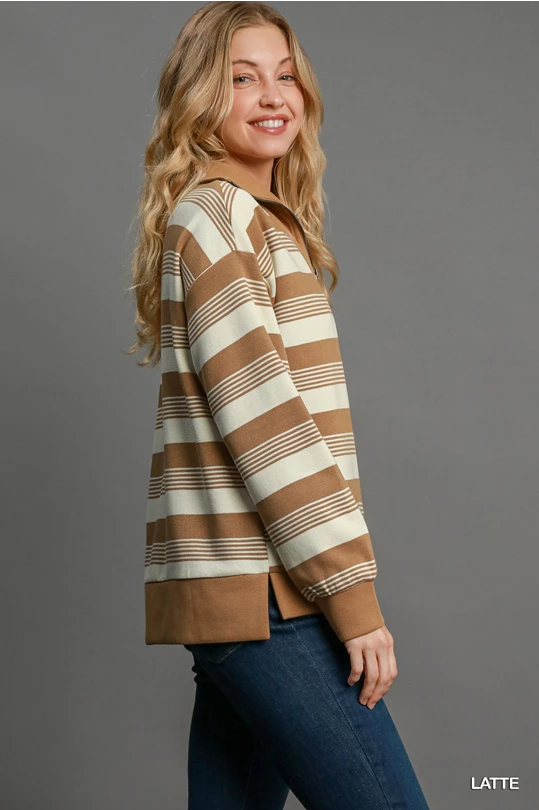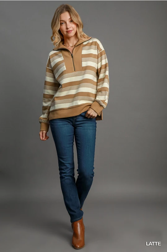 Umgee Latte Knit Half Zip Top