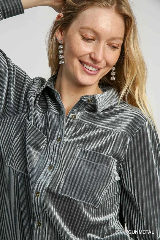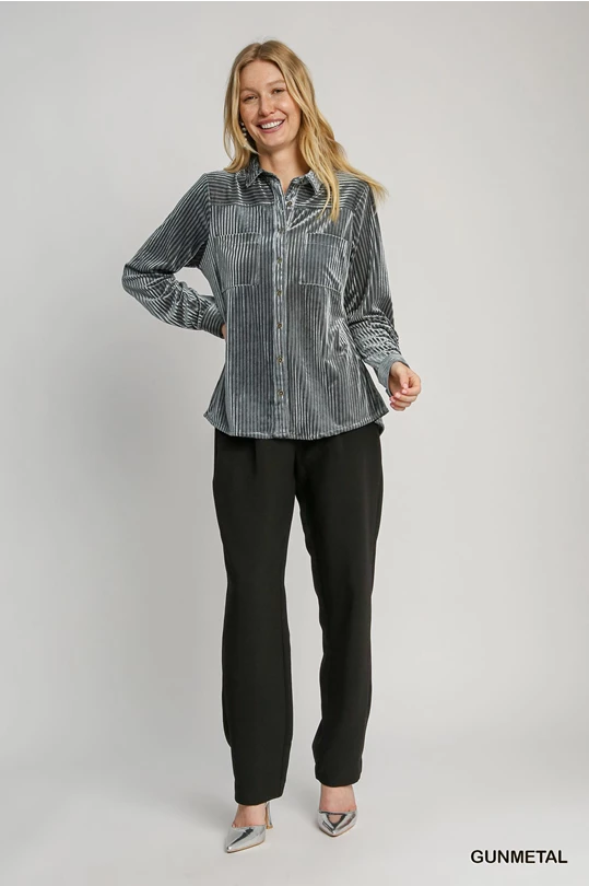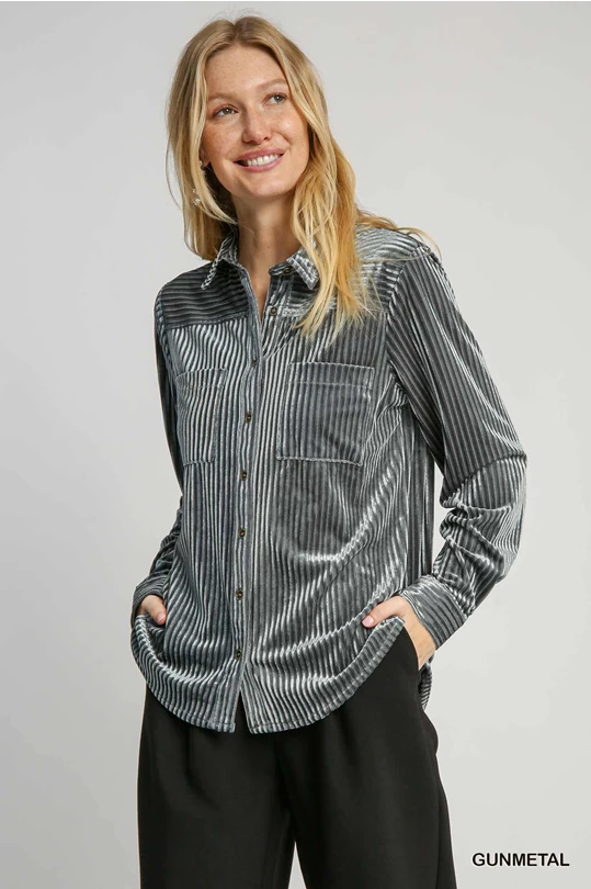 Umgee Gunmetal Velvet Collared Top